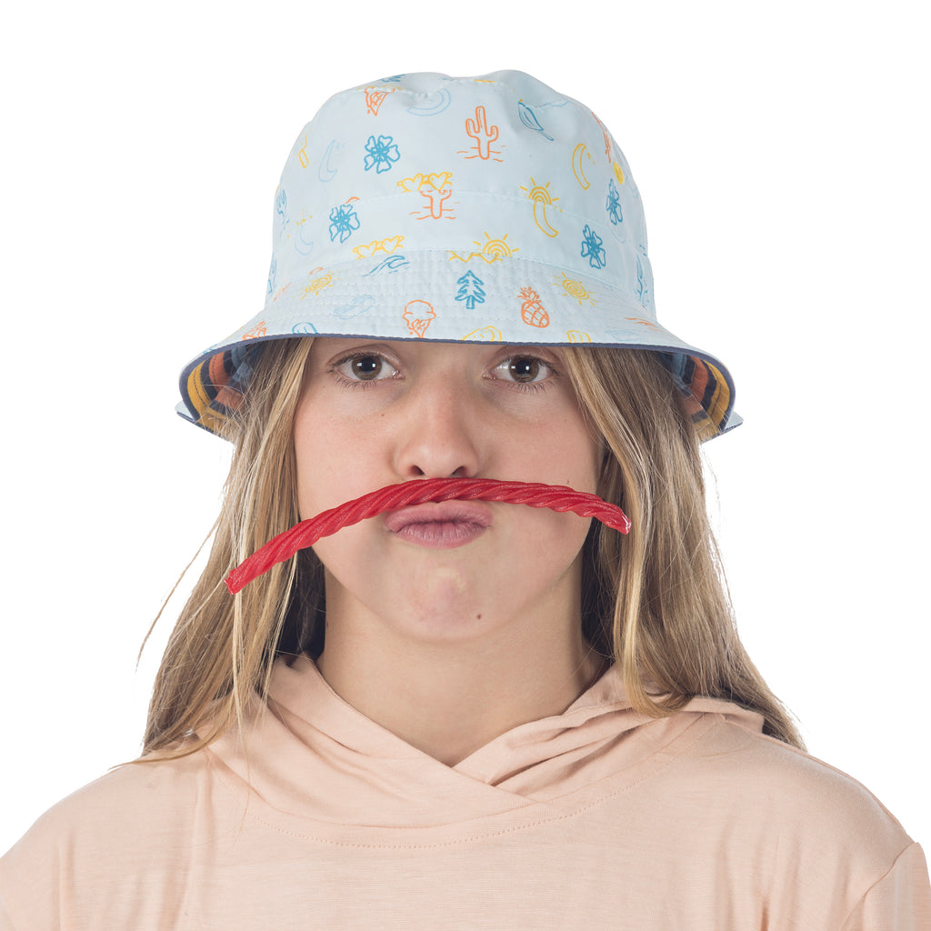 Two looks, one hat, all the summer vibes. The Kids Flip Flop Bucket Hat is ready for sun-soaked adventures with playful prints (hello, popsicles and pineapples!) on one side and a fresh flip-side for double the fun. Durable, sun-protective, and easy to wipe clean — it’s built for beach days, park hangs, and everything in between.