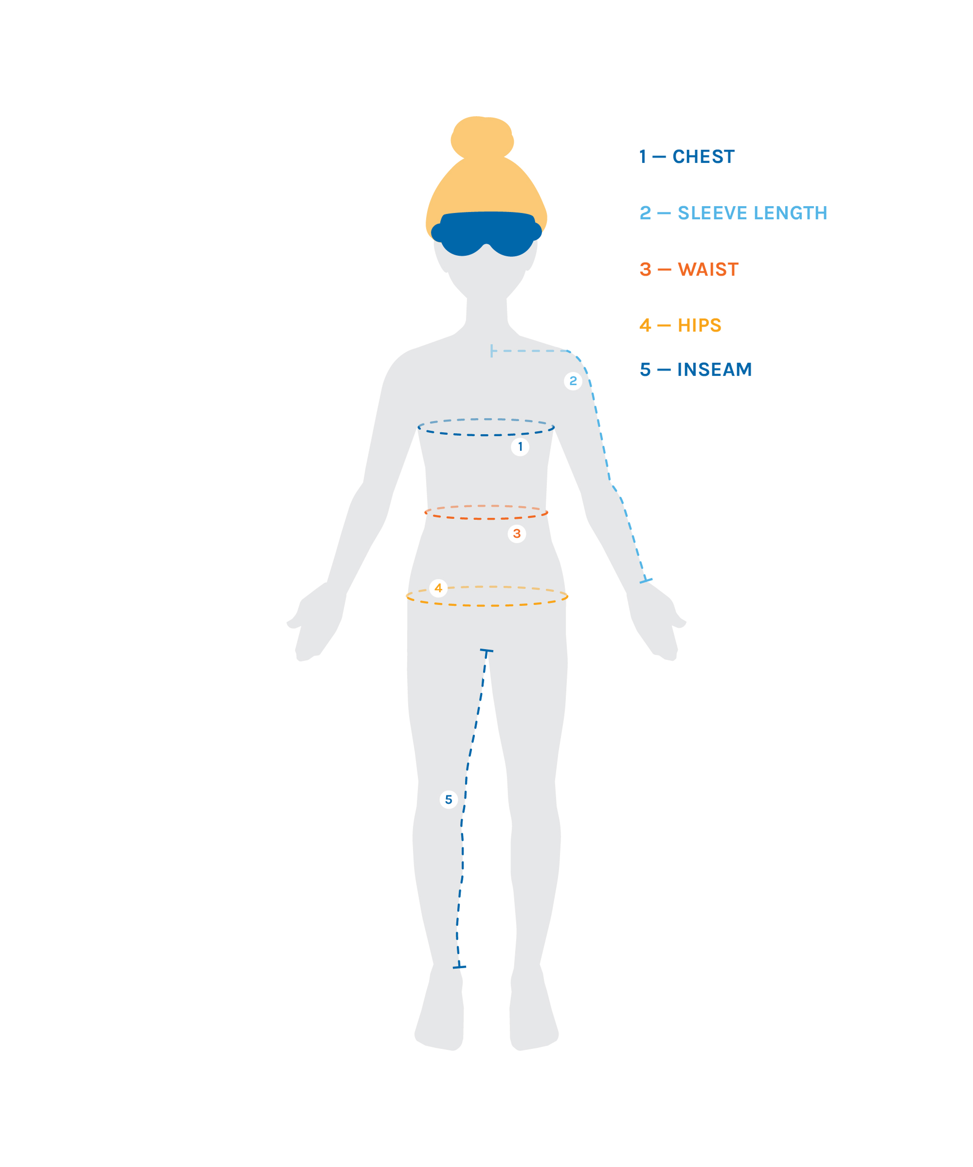 Measurements in this size chart are listed in inches and refer to body measurements, not garment measurements.