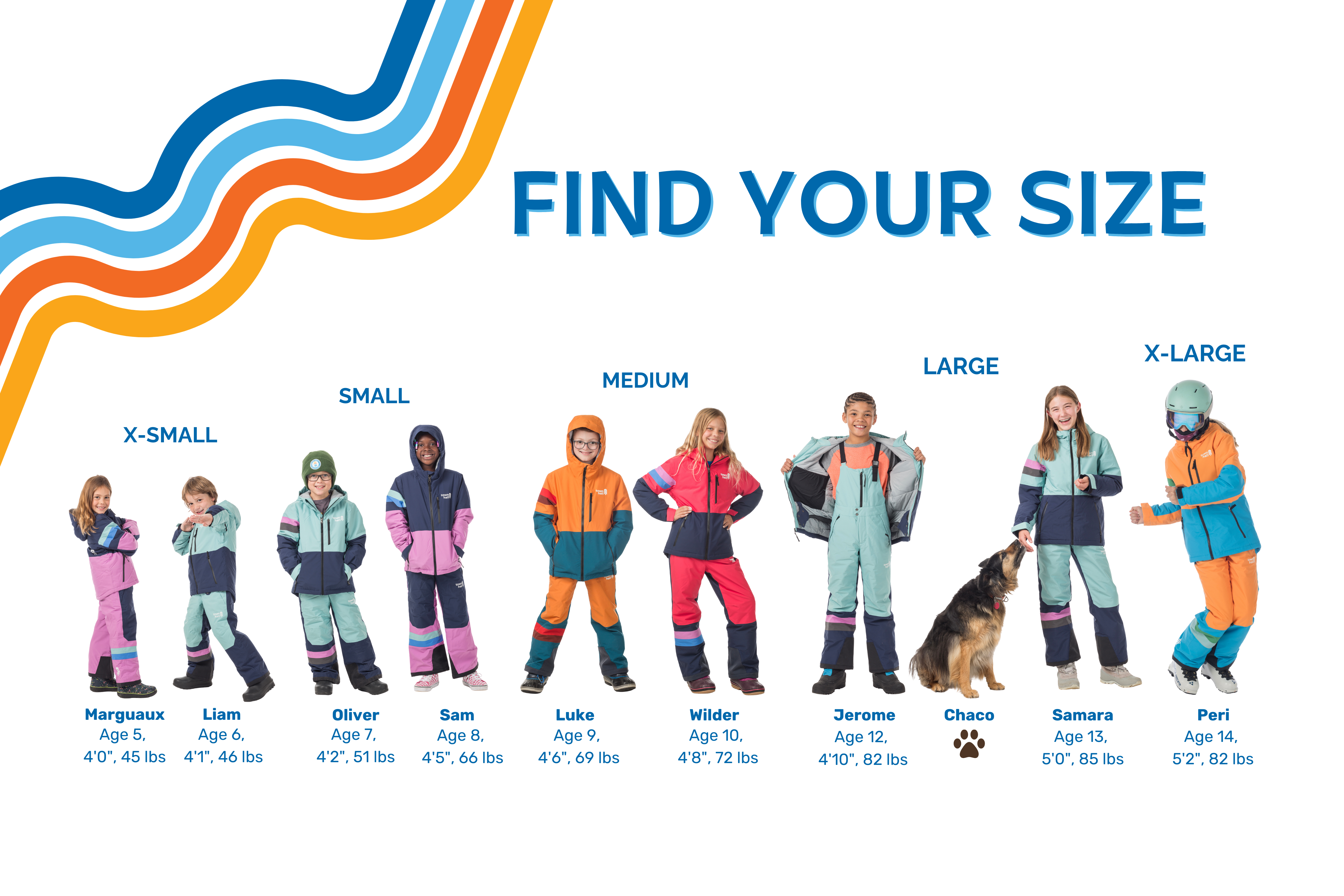The fit on our outerwear is standard, allowing you and your kids to have plenty of movement. It is roomier and designed for comfort - more spacious than trim cuts, but not as baggy as relaxed.