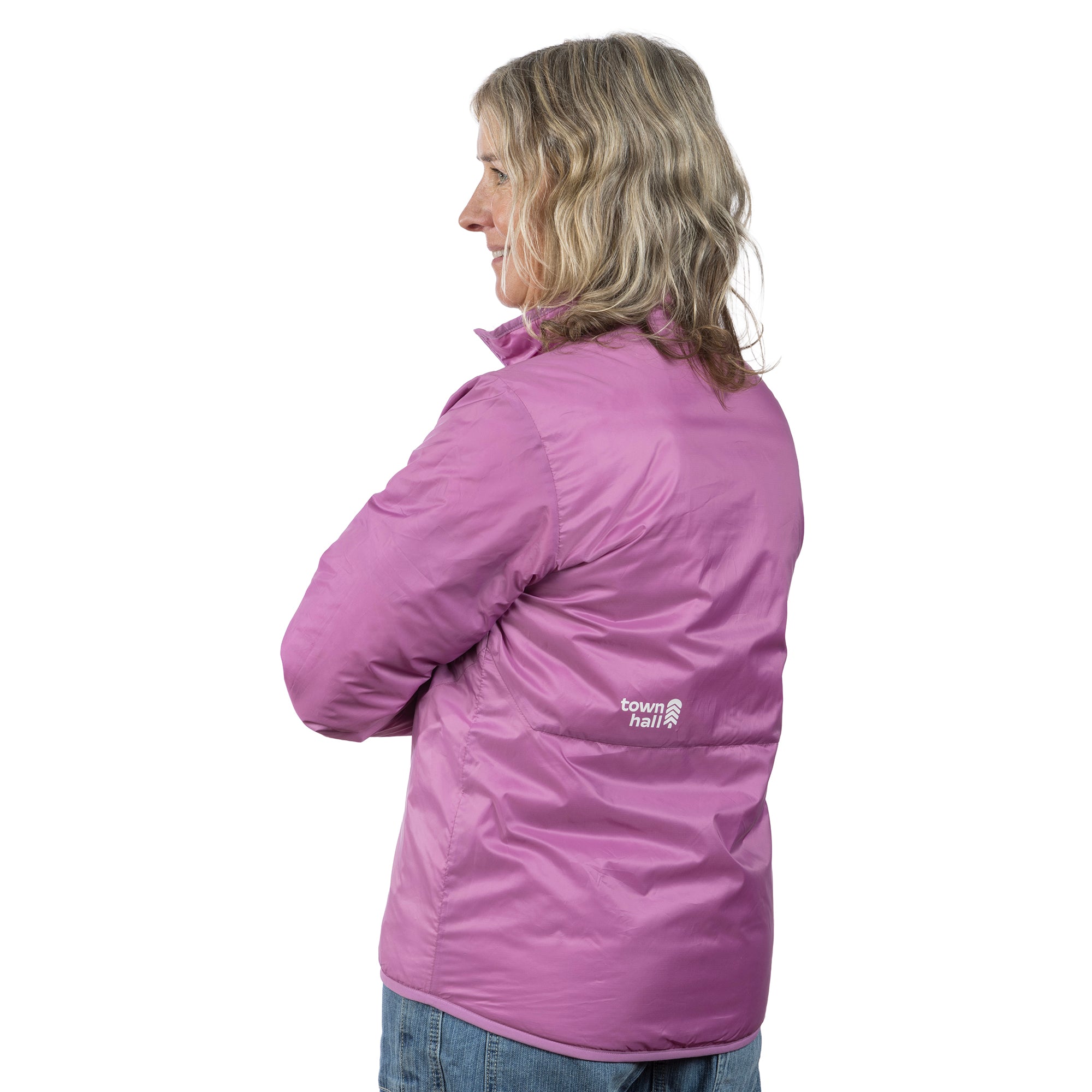 Welcome to your new go-to jacket and our first women's specific jacket, made in collaboration with the pros at Title Nine. When a hooded puffy coat is too much, and a fleece jacket is too little, the OuttaTown swoops in and saves the day (and night). This lightweight, reversible layer offers warmth without the bulk, thanks to 75 grams of recycled synthetic insulation. Crafted with durable ripstop fabric and finished with a PFC-free DWR, this jacket is ready to take on unexpected snowflakes or sprinkles. Its compressible design makes it easy to pack and perfect for layering, giving you the flexibility you need for all your outdoor adventures. When your mood changes, you can quickly reverse to the opposite side for a fun and different look.